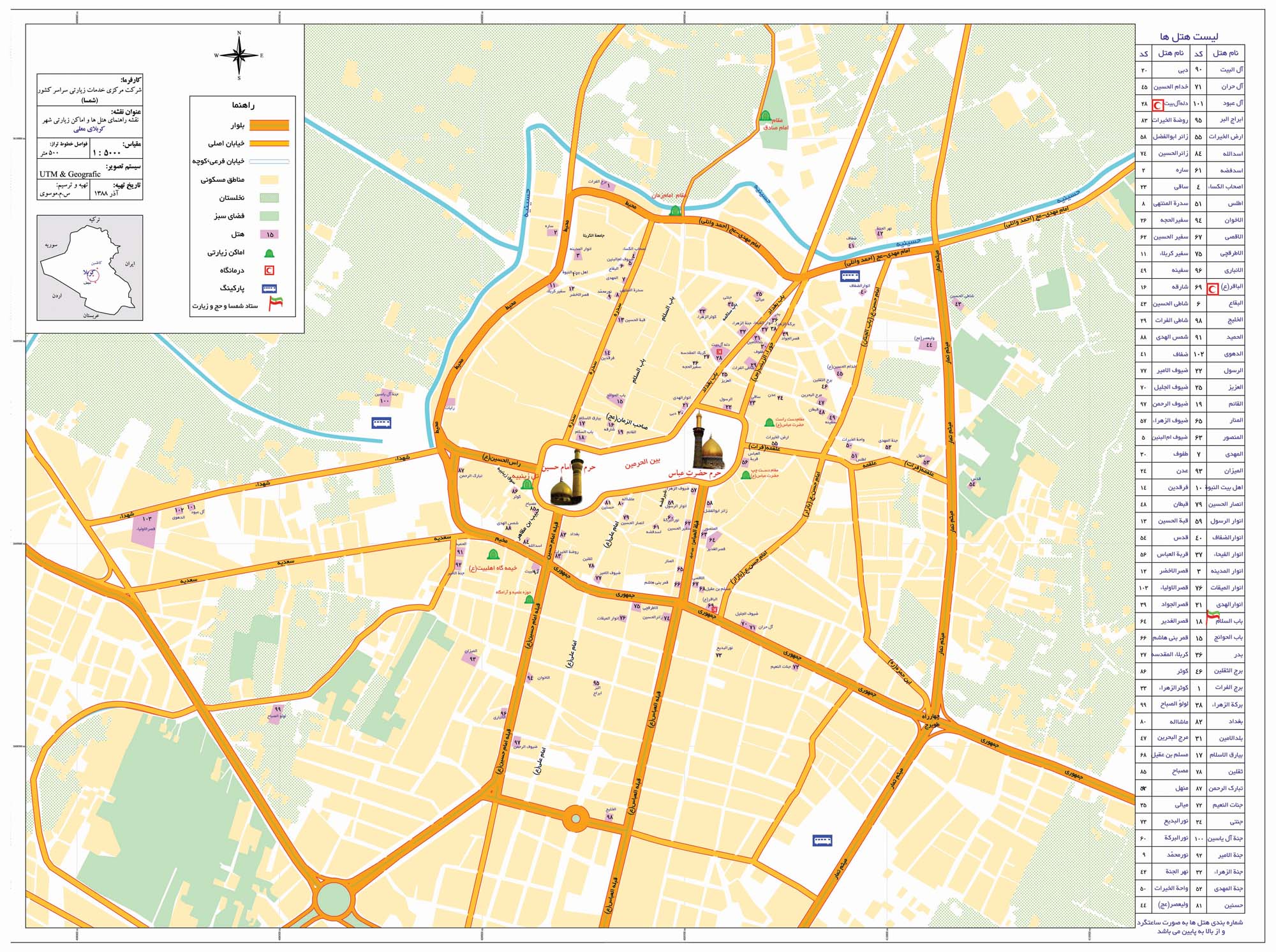 نقشه راهنمای هتل هاو اماکن زیارتی شهر کربلای معلی